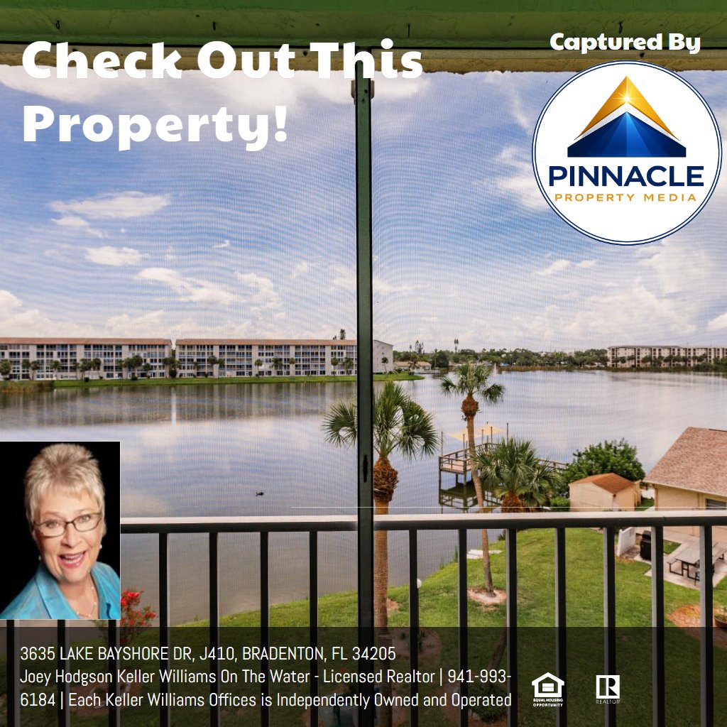 Looking for a spacious 2 bedroom, 2 bath home in a welcoming 55 plus community, rich with amenities, with a “million-dollar view” AND an attractive price? Look no further than this light, bright condo overlooking 19-acre Lake Bayshore. Bayshore on the Lake, Phase II has FULLY FUNDED RESERVES, a COMPLETED MILESTONE REPORT, a COMPLETED SIRS (Structural Integrity Reserve Study) and NO increase in the 2026 monthly fee. Other features that provide peace of mind are hurricane-impact windows and sliders, and many recent updates: water heater and disposal (2024), A/C (2021), kitchen appliances (2021) and luxury vinyl plank (2021) throughout. In addition, the Seller is providing a 13 mos. CHOICE ULTIMATE Home Warranty with a low $75 service call fee. The light, bright kitchen has recently installed quartz countertops, stainless steel deep sinks and faucet, with updated ceiling and white appliances (2021). The passthrough to the dining room is adorned with a quartz breakfast bar. The spacious dining room/living room combo is flanked by a custom slider leading you to the huge screened balcony from where you can feast your eyes on the morning sunrise over Lake Bayshore. You will also enjoy the lake view from the primary bedroom, which not only has a large walk-in closet but also an ensuite bath and private office nook. Another custom slider provides easy access from the primary bedroom to the PRIVATE LAUNDRY closet on the balcony which houses a FULL-SIZE SAMSUNG WASHER and DRYER (2021) and something that is a rarity in most condos – a UTILITY SINK!!! Both baths have updated vanities and toilets. Modern fans have been installed in the kitchen, living room, both bedrooms and screened balcony. Talk about LOCATION, LOCATION, LOCATION … in addition to this spectacular view, the unit is located just two doors from the elevator with an assigned parking spot in near the front of the building (see photo) and close to the pool & clubhouse. Bayshore on the Lake is in the heart of Bradenton, close to shopping, restaurants, the beaches of Anna Maria Island, downtown Sarasota, UTC Mall, the Ringling Museum, the Asolo Theater and the Manatee Players. Monthly condo fee of $569 includes heated pool, clubhouse, shuffleboard, internet, basic tv, trash, exterior and grounds maintenance, building insurance, and management company. Sorry no pets except for support animals (condo approval required). Tired of maintaining your yard or shoveling snow? - trade it for a day of fishing from the pier, kayaking on the lake or lounging in the heated pool. Schedule your private showing today! All dimensions are approximate.