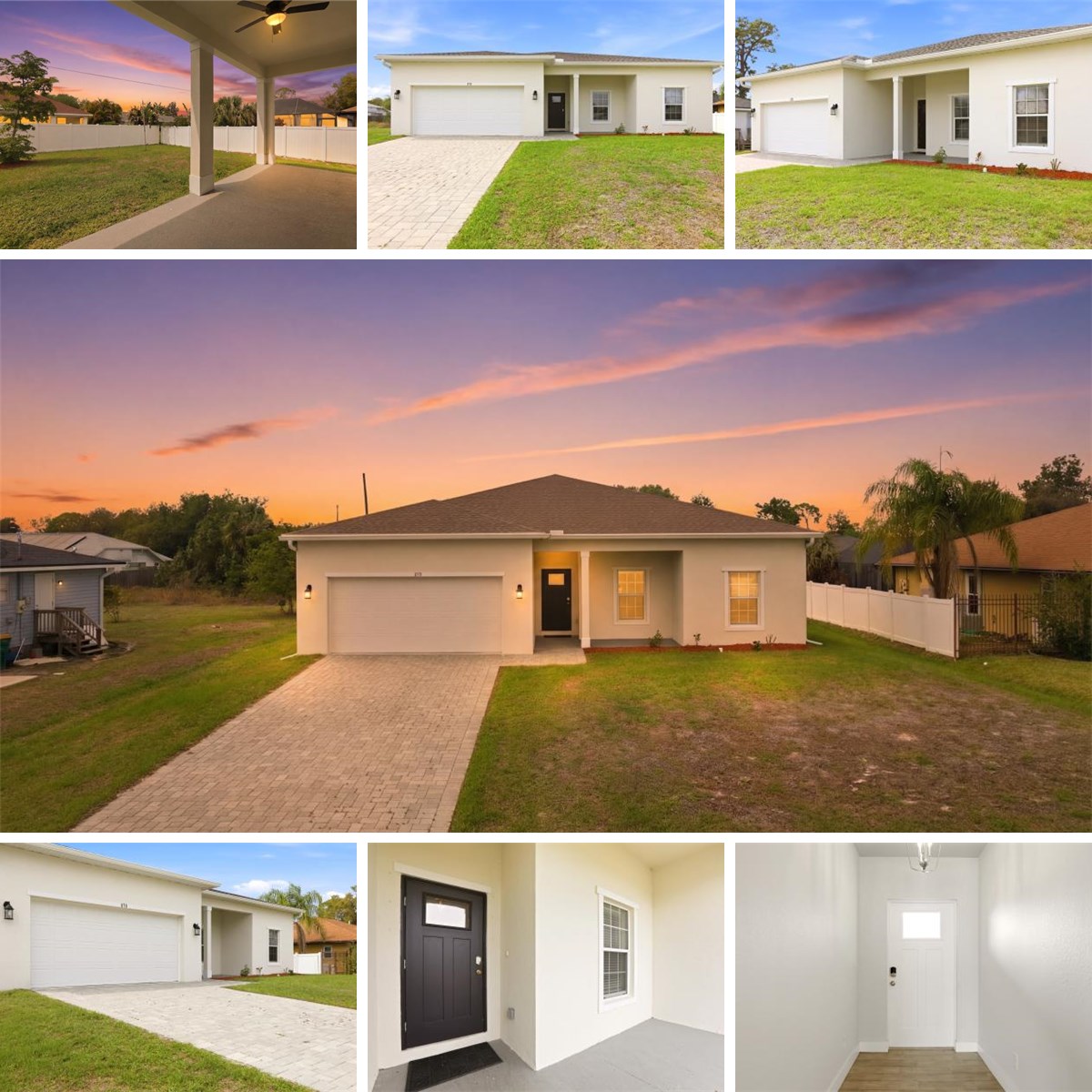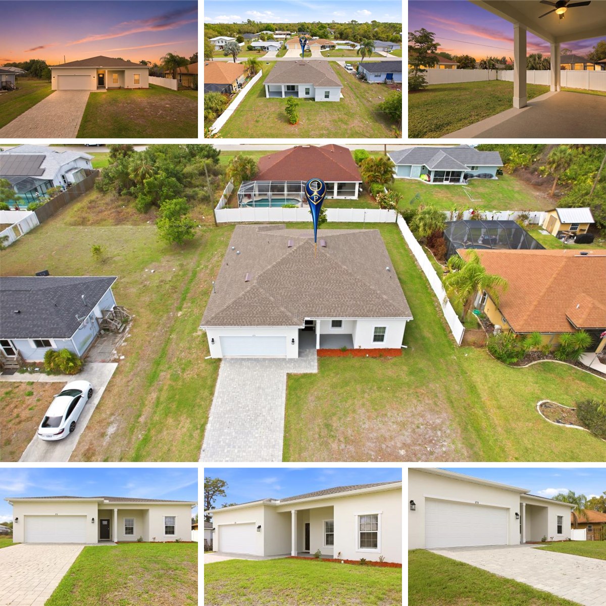 Welcome to this 2022 Mardon Construction–built Alison model home in Port Charlotte, offering 4 bedrooms, 2 bathrooms, and 1,710 square feet of thoughtfully designed living space. This attractive single-story residence features a clean, modern exterior, a classic hip-roof design, and a paver driveway leading to a spacious two-car garage. Step inside to a bright, open-concept floor plan where the kitchen, living room, and dining area flow seamlessly—perfect for both entertaining and everyday living. Tile flooring extends throughout the entire home, providing a cohesive, low-maintenance finish ideal for Florida living. High ceilings, recessed lighting, and abundant natural light enhance the open and airy atmosphere. The modern kitchen showcases white cabinetry, stainless steel appliances, a breakfast bar, and pendant lighting, all overlooking the main living areas. The laundry room is conveniently located off the kitchen and includes a washer, dryer, and utility sink. Sliding glass doors provide easy access to the outdoor space. The primary suite is privately located on one side of the home, offering a peaceful retreat complete with his and her walk-in closets, a dual-sink vanity, a walk-in shower, and a private toilet room. On the opposite side of the home, three additional bedrooms—each with built-in closets—share a full bathroom. Any of these rooms can easily serve as a home office, guest room, gym, or flex space to suit your lifestyle. Out back, enjoy a covered patio with ceiling fan, perfect for relaxing or entertaining year-round. The large backyard provides ample space to add a pool or create your own custom outdoor oasis. The home’s HVAC system is located within the conditioned space, meaning the heating and cooling equipment is placed inside the insulated, climate-controlled areas of the home. This design helps improve energy efficiency, provides easier maintenance access, and ensures the system operates in a protected environment for reliable year-round comfort. Additionally, the home features a separate 50-amp breaker in the electrical panel and is prewired to specifically handle an 8,500–15,000-watt generator, offering peace of mind and convenience during power outages. The property is also connected to public water and sewer, eliminating the need for a well or septic system. Situated in a well-established neighborhood close to shopping, dining, schools, and all that Port Charlotte has to offer, this home is move-in ready, low maintenance, and thoughtfully designed for modern Florida living.